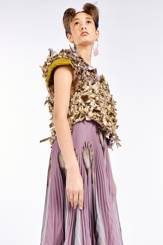 Sold outPleated 'The Eye of Nebula' Lamé Top