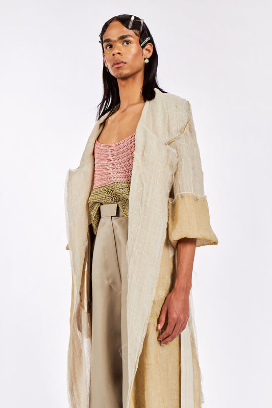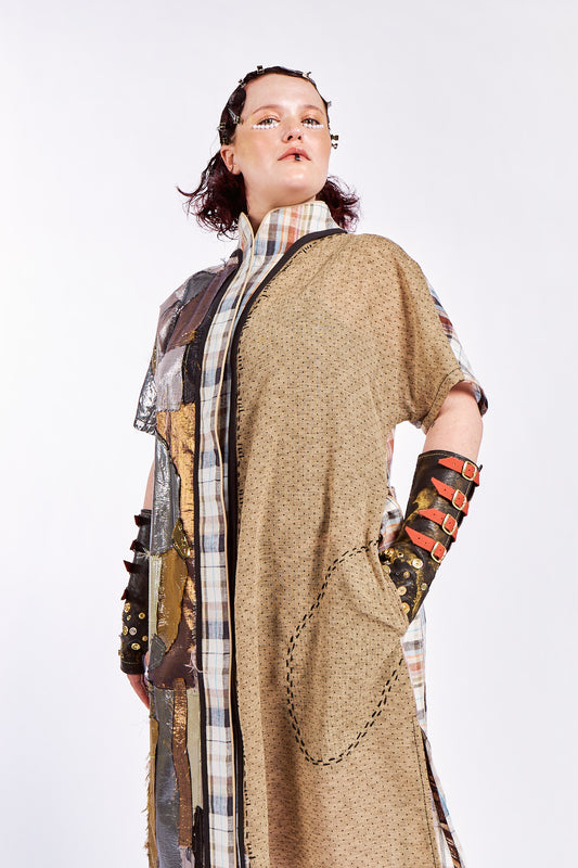 Dupion Chinese Silk 'Ancient Soil' Coat with Hand Embroidery Stitches