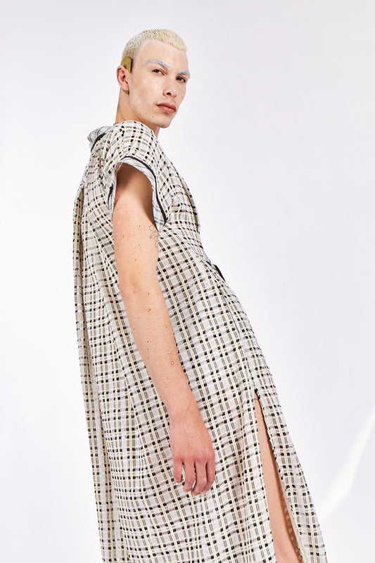 Cosmic Grid Dress Coat With Asymmetric Lapels