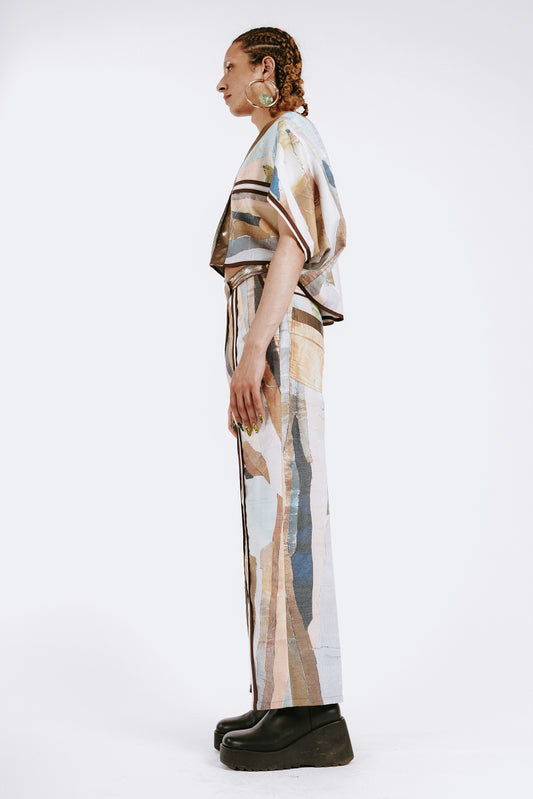 Printed Deadstock Synthetic 'Soil Horizon' Printed Trousers