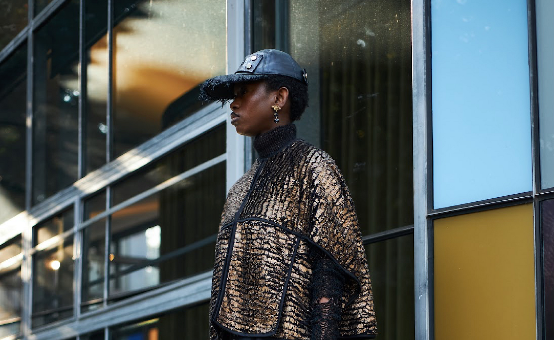The Black Napa Leather and Black Vintage Raffia Cap is crafted from black Napa leather, black ostrich shin, and black vintage raffia. Other design details include an adjustable press stud closure for a comfortable fit. This piece is finished with Italian hardware.