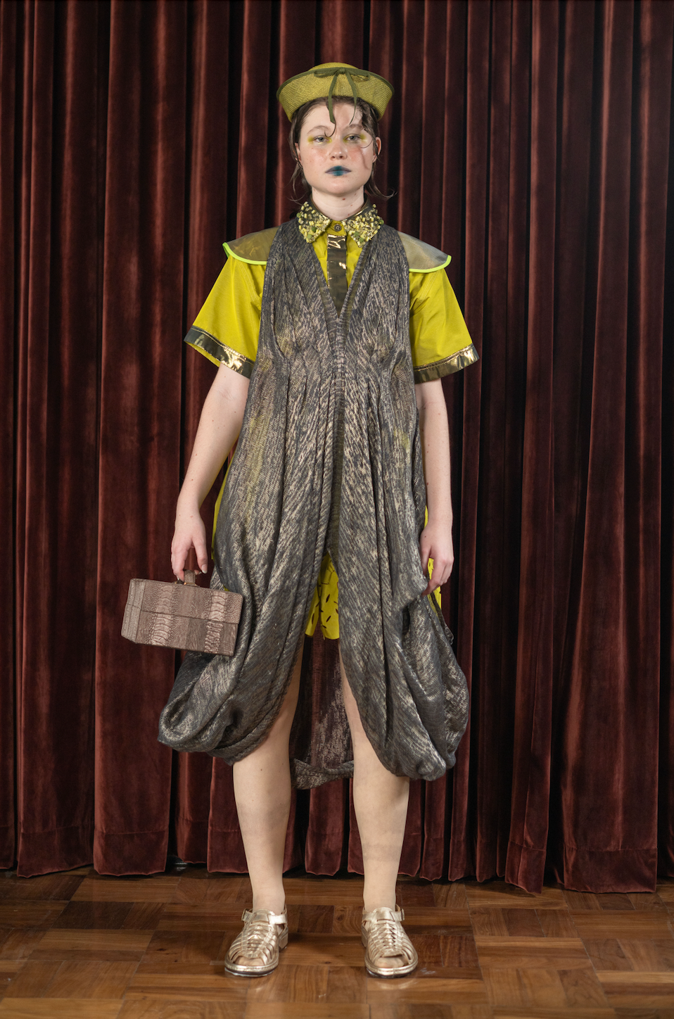 Fabrication: Couture Pear Green Laser-Cut Synthetic and Gold Nylon Lamé