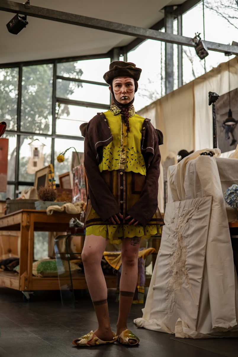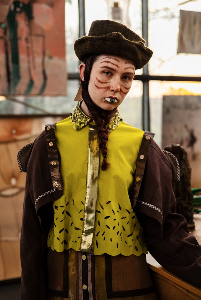 Fabrication: Dark Brown Linen and Copper Silk Lamé