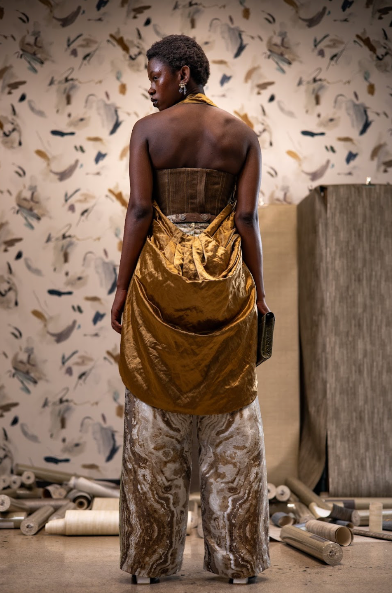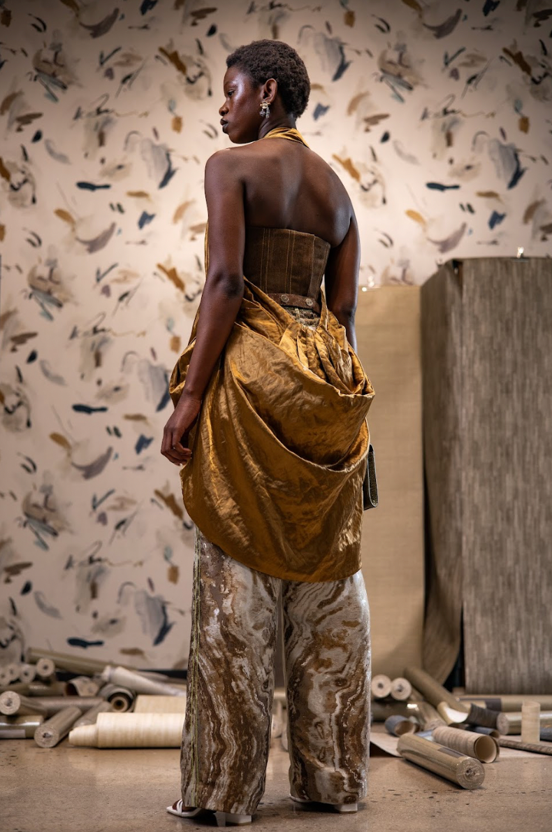 Fabrication: Enzo Orient Cotton Polyester Blend and Gold Zibbon