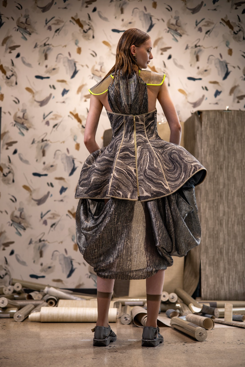Fabrication: Ondetto Anthracite Cotton Polyester Blend, Khaki Textured Silk, and Navy Egyptian Cotton
