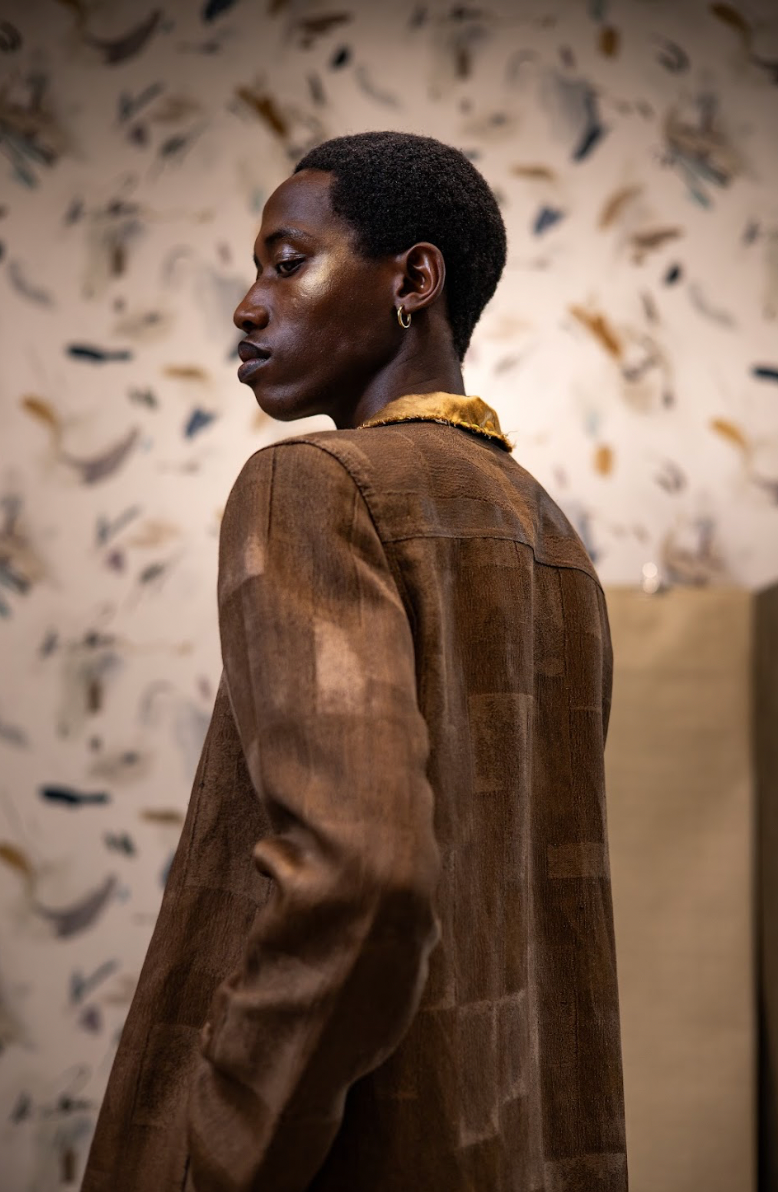 Our Portland Teak Viscose-Linen Blend Unconstructed Shirt Blazer is crafted in a relaxed, unlined silhouette. The piece features an Enzo Orient cotton-polyester blend facing and a Heritage Linen barkcloth collar, offering subtle texture contrast within a soft suiting framework.