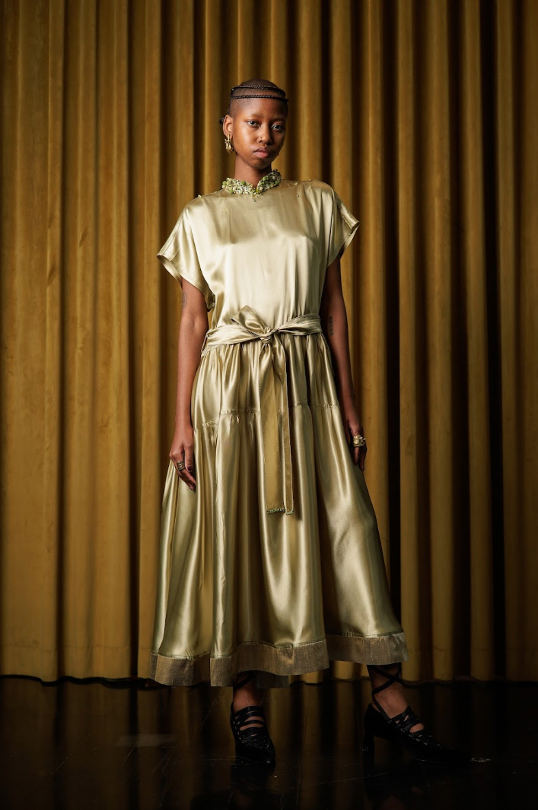 Fabrication: Reclaimed Moss Green Acetate Satin