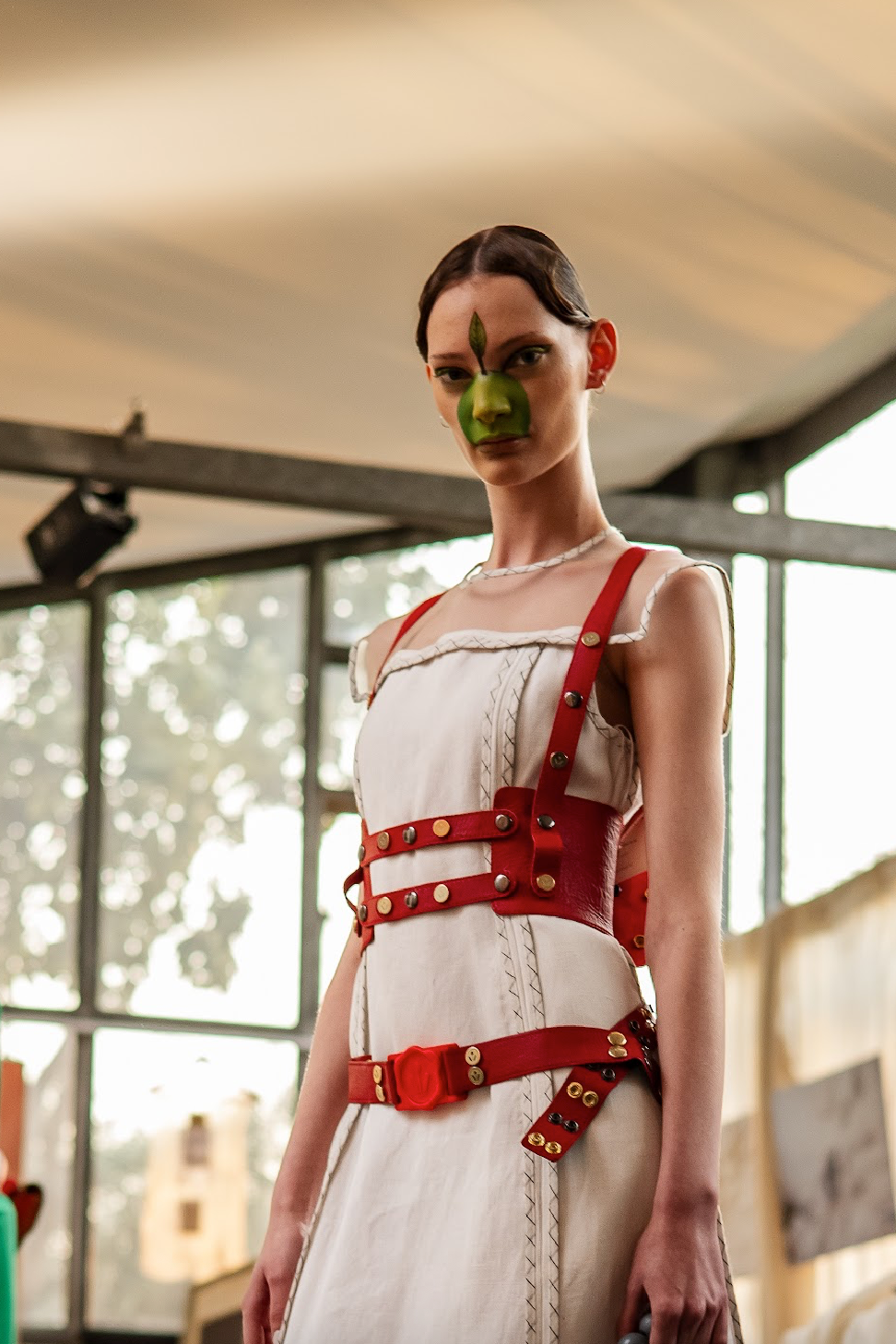 This Red Napa Belt features a VIVIERS 3D Printed Buckle, Italian hardware, and press stud details.