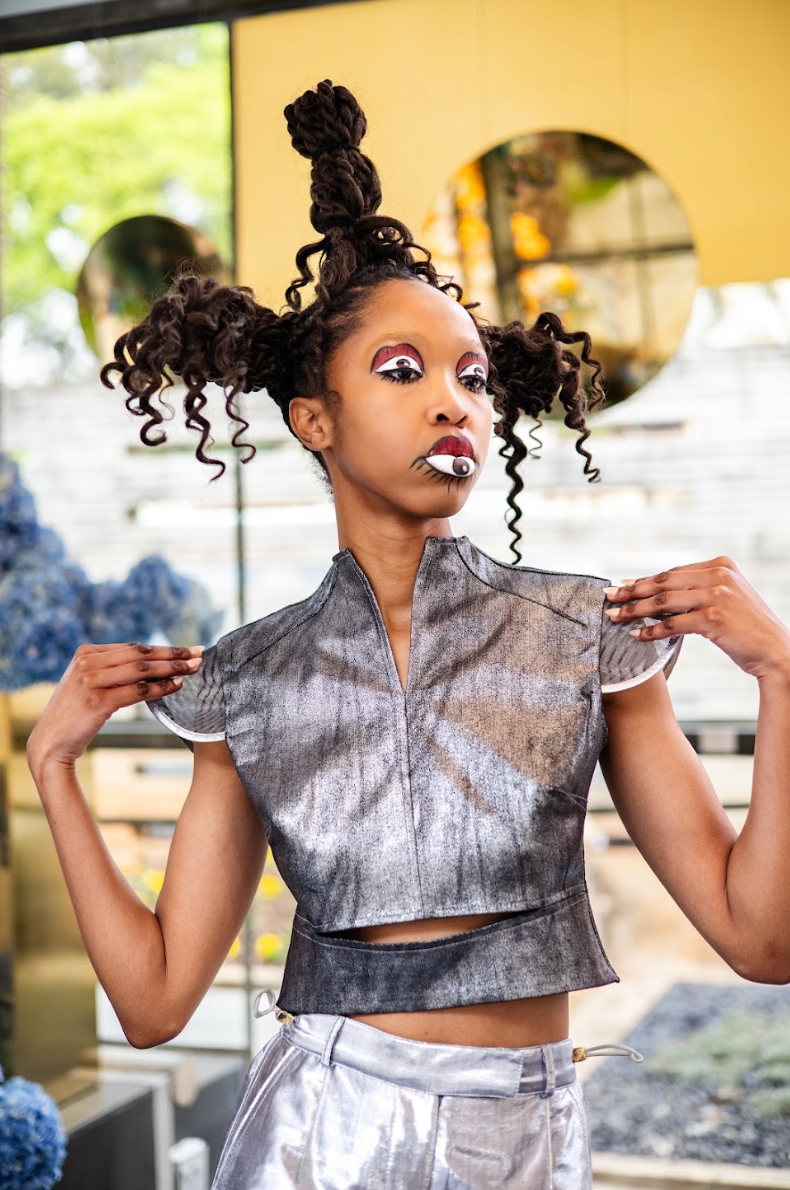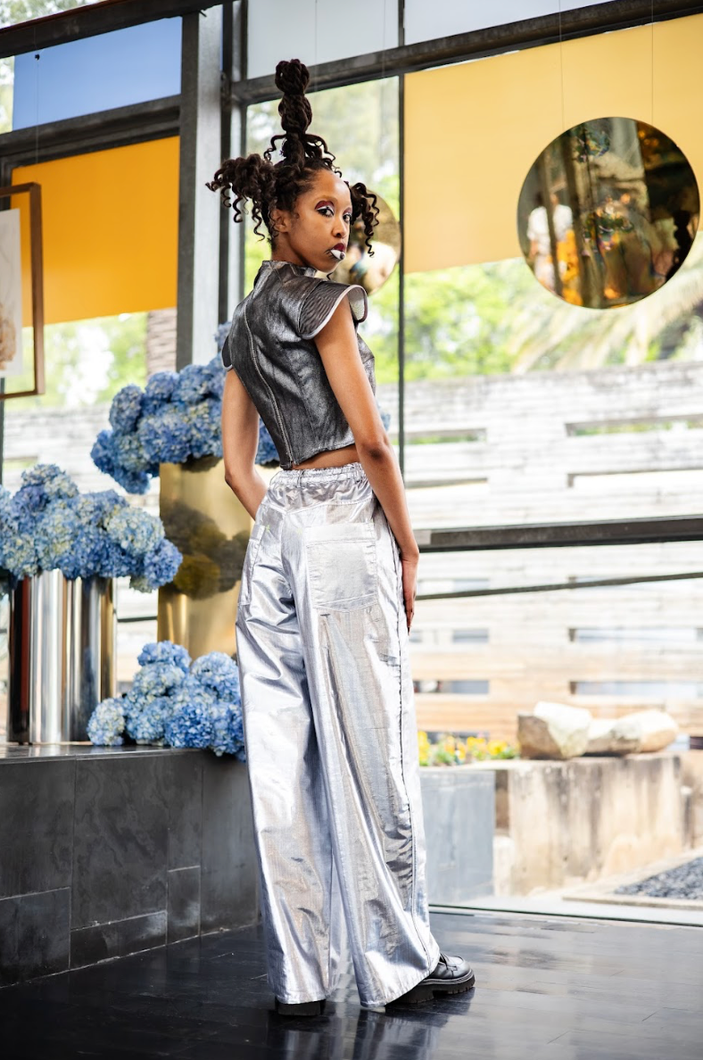 Fabrication: Stretch Denim with Silver Foil and Silver Zibbon Shoulder Pads
